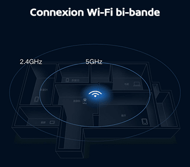 La caméra prend en charge la connexion WiFi bi-bande 2,4Ghz et 5Ghz permettant une réduction des interférences du signal et une augmentation de la vitesse de transmission.