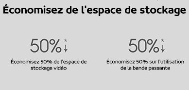 La nouvelle génération de technologie de codage vidéo H.265 offre une visualisation plus fluide dans les mêmes conditions de réseau, économise de la bande passante et fournit des images claires. Avec le même pixel et le même débit binaire, le stockage vidéo du codage H.265 représente 50% du H.264 traditionnel, économisant la moitié de l’espace de stockage.