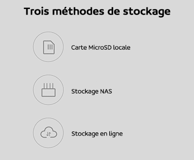 Plusieurs solutions de stockage sont disponibles. En effet, la caméra prend en charge le stockage sur carte MicroSD, sur serveur NAS, et bien entendu sur le cloud.