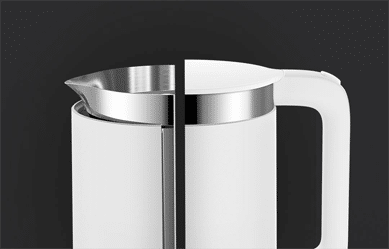 Tous les composants en contact direct avec l’eau, tels que le réservoir intérieur et le couvercle supérieur, sont fabriqués en acier inoxydable 304 de haute qualité, conforme à la norme GB 4806. Ce matériau en acier inoxydable est très sûr et largement utilisé dans l’industrie alimentaire. Il présente l’avantage de ne pas rouiller et d’être très facile à nettoyer. La bouilloire adopte une technologie d’intégration monobloc. Le fond est lisse pour éviter que le calcaire ne s’y cache. Ne vous inquiétez plus de la saleté. Qu’il s’agisse d’une table basse dans le salon, d’un bar de cuisine ou d’un coin de bureau, son look minimaliste et sophistiqué est magnifique sous tous les angles. Pour éviter les traces de tartre, Xiaomi vous conseille d’utiliser un purificateur d’eau.