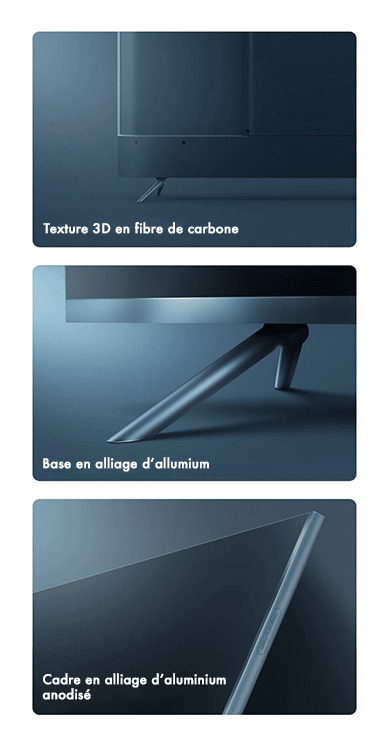 Xiaomi a cherché une conception plein écran avec un corps en métal pour sa nouvelle génération de télévision. La bordure a été amincie au maximum vous apportant un rapport de 97% assurant une expérience de visionnement plus agréable et une immersion totale.