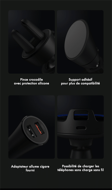 Installation en une minute. Le support se fixe sur la grille de ventilation très facilement et tient fermement grâce à un système de pince crocodile ou un système magnétique pour les véhicules équipés. Le chargeur allume cigare est inclus avec le chargeur sans fil et vous n’aurez donc aucun achat supplémentaire à réaliser… Il sera prochainement disponible à partir de 22€ en Chine et donc aux alentour des 35€ chez les importateurs. Disponible chez notre partenaire :