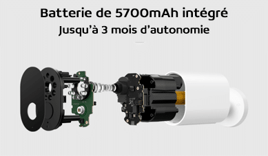 Aucun câble à l’extérieur, mais une grosse batterie lithium de grande capacité de 5700 mAh permettant à la caméra de fonctionner jusqu’à 3 mois avec une seule charge. Il suffira donc seulement 4 charges chaque année pour son fonctionnement.