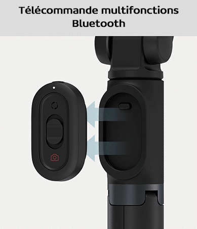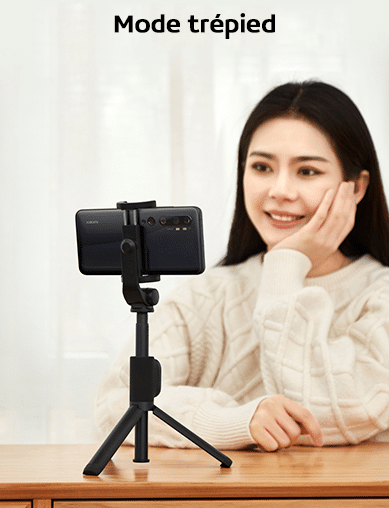 Dépliez la poignée de la perche à selfie pour la transporter en trépied en quelques secondes. Une fois en mode trépied, vous pouvez photographier ou filmer facilement mais également l’utiliser pour regarder un film sur votre téléphone, ou avoir une conversation vidéo sans tenir votre téléphone.