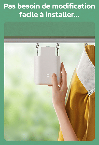 Léger et facile à accrocher, le Xiaomi Mijia Curtain Companion s’installe partout peu importe la pièce et sur différent type d’installation (rails ou tringle ronde). Vous déménagez, il peut être retiré et transporté en un clin d’œil.