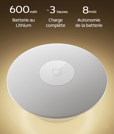 La Xiaomi Mijia Night Light 3 intègre une batterie Lithium de 600mAh permettant d’obtenir une autonomie allant jusqu’à 8 mois en utilisation à faible luminosité en mode détection. Donc, vous n’avez pas de problèmes liés au remplacement fréquent de piles. La veilleuse se recharge via un port USB-C et peut-être complètement chargée en 3h environ.