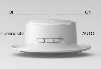 On retrouve un bouton et un interrupteur sur la veilleuse. L’interrupteur permet de commuter pour allumer la Xiaomi Mijia Night Light 3 continuellement, l’éteindre, ou la passer en mode auto qui active la détection. Le bouton permet quant à lui de modifier le mode de luminosité faible ou haute.