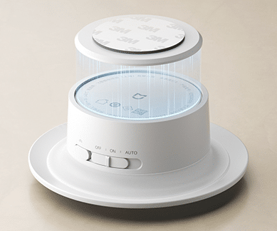 Le corps de la veilleuse est doté d’un aimant permettant d’être fixé facilement sur toute les surfaces métalliques. Pour proposer une plus grande liberté d’installation, la marque propose également une base avec un adhésif 3M qui permet donc de le fixer où vous le souhaitez.