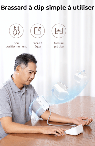 La marque a voulu proposer un produit simple d’utilisation. Le brassard à clip est ultra simple à installer et évite de devoir l’ajuster à plusieurs reprises. Les signaux de pression artérielle sont collecté.