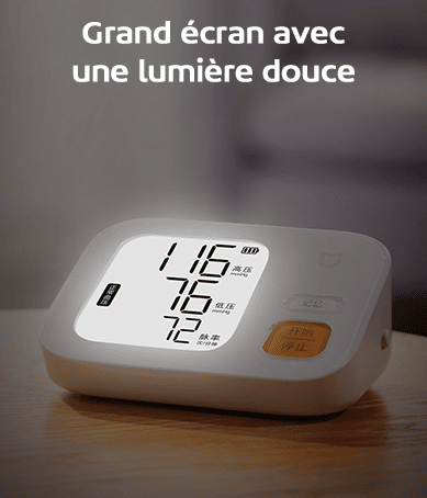 Un grand écran de 3,7’’ est parfaitement intégré dans le tensiomètre et les informations de base sont affichées en gros afin que les personnes âgées puissent l’utiliser. Les données sont disposées raisonnablement pour éviter les erreurs de lecture. Même dans un environnement faiblement éclairé, les données sont toujours visibles grâce à une lumière douce intégrée.
