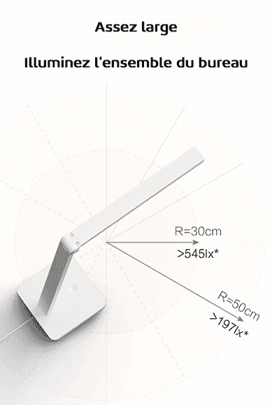 Cette lampe dispose d’un éclairage puissant jusqu’à 1200 lumens correspondant à la norme d’éclairage de classe A en Chine. Lumineux et uniforme, prenez soin de vos yeux. De plus, la technologie d’éclairage uniforme à double lentille permet d’élargir la zone éclairée. L’écriture ou la lecture ne sont plus limitées.