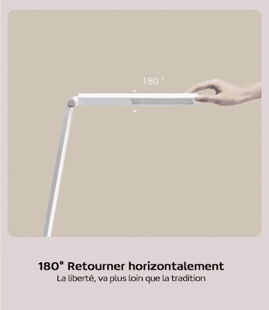 La Xiaomi Mijia Table Lamp Lite est en plastique ABS blanc classique dont les dimensions sont les suivantes 408 x 140 x 410 mm pour un poids de 0,6kg. Elle est réglable facilement jusqu’à 218° de haut en bas et 180° horizontalement.