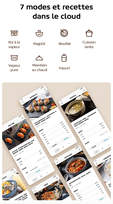 La marque a intégré 7 modes de cuisson allant de la cuisson vapeur au maintien au chaud en passant par les yaourts. Les recettes sont disponibles dans l’application Xiaomi Home et mises à jour en temps réel.