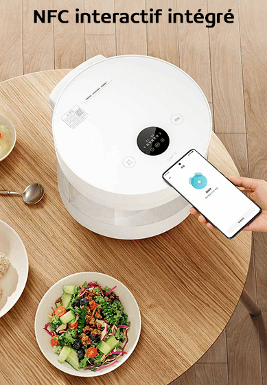Xiaomi propose un tout nouveau mode de fonction avec l’ajout du NFC interactif. Ainsi, il suffit de poser son smartphone sur le dessus pour activer automatiquement votre mode de cuisson préféré.