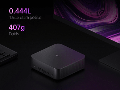 Il prend en charge la mémoire haute vitesse avec 2 emplacements (SO-DIMM DDR4-3200MHz) jusqu’à 64Go (2x 32Go) ainsi que 2 emplacement SSD (un emplacement MVMe et un emplacement SATA). Le mini PC ne contient ni mémoire ni stockage, il est donc nécessaire de les acheter séparément.