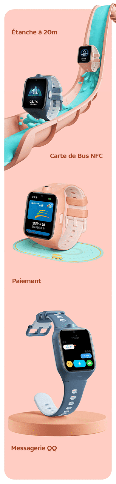 Plusieurs autres fonctions sont disponibles comme le NFC permettant d’intégrer la carte de bus chinoise, l’étanchéité jusqu’à 20m, la fonction de paiement qui est gérée par les parents ou la prise en charge de QQ, un programme de messagerie très populaire en Chine.