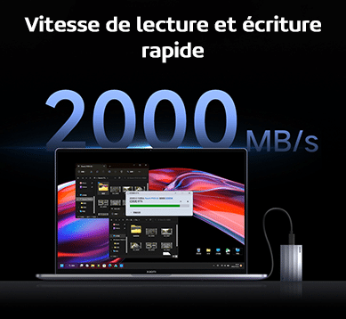 Le Xiaomi Mobile SSD 1Tb offre une vitesse de lecture et écriture rapide jusqu’à 2000Mo/s. Le téléchargement de données peut-être effectué en peu de temps. En utilisation quotidienne, un film haute définition 4K peut être transmis en 1min seulement.