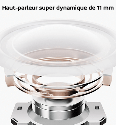 Les écouteurs disposent d’un haut parleur super linéaire de 11mm. L’unité sonore adopte la conception d’un diaphragme à haute résilience et d’un support de centrage. Le système de vibration de la bobine acoustique est équilibré et puissant.