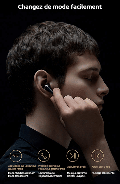 Le bouton tactile permet de contrôler facilement votre musique ou répondre à un appel par exemple. Il suffit d’appuyer brièvement ou longuement sur le casque pour réaliser une fonction.
