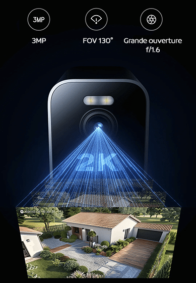 De jour comme de nuit, retrouvez une qualité d’image claire dans n’importe quel environnement grâce au capteur de 3Mp. Ce capteur dispose d’une grande ouverture f/1.6 améliorant la sensibilité à la lumière. La résolution d’affichage est de 2K vous permettant de ne rater aucun détail que ce soit le livreur devant la porte ou une plaque d’immatriculation d’un véhicule.