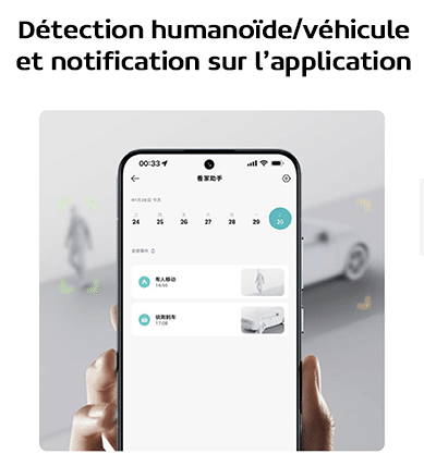 La caméra intègre un système de détection humaine et de véhicule via l’IA. Lorsqu’une détection est réalisée, l’application Xiaomi Home envoie une notification immédiatement et enregistre une vidéo afin de protéger la sécurité de votre maison. Elle dispose également d’un système d’avertissement sonore et lumineuse permettant de dissuader les intrus de continuer.