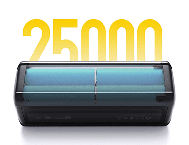 À l’intérieur, on retrouve cinq batteries de 5000mAh qui forment ainsi une powerbank d’une très grande capacité de 25 000mAh, garantissant une autonomie amplement suffisante pour vos voyages. Vous aurez ainsi beaucoup d’énergie pour ne jamais vous soucier de tomber à court…