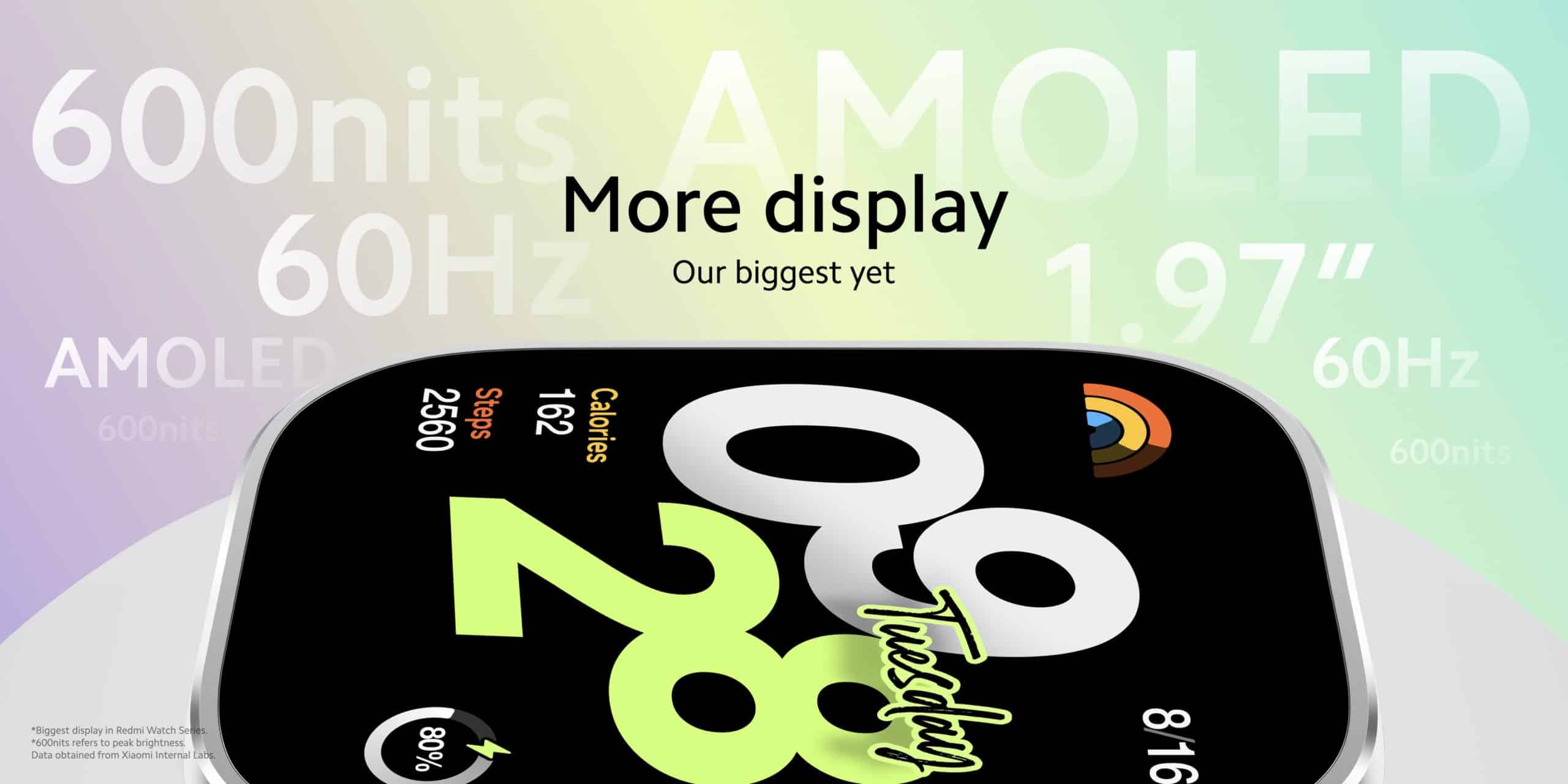 La nouvelle montre Redmi Watch 4 est équipée d’un écran AMOLED carré ultra-large de 1,97″ pour une expérience plus satisfaisante. Cette dernière édition est également la plus grande smartwatch Redmi de forme carrée, offrant une expérience visuelle des plus complètes.