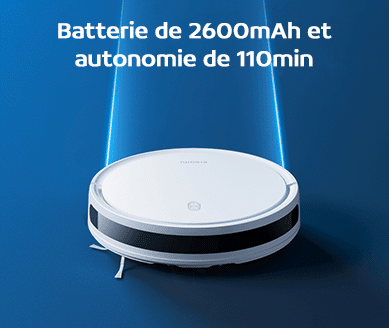 Le Xiaomi Robot Vacuum E12 dispose d’une batterie d’une capacité de 2600mAh. L’autonomie en mode standard (aspiration et lavage) peut atteindre 110min permettant de ne pas se soucier d’une interruption du nettoyage.