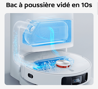 La base aspire toute la poussière au retour du robot aspirateur en 10s seulement grâce au ventilateur de 17 000Pa. La base intègre un sac à poussière pour la collecte d’une capacité de 2,5 litres pouvant contenir environ 60 bac à poussière.