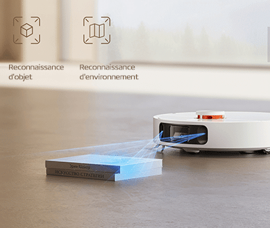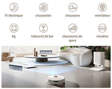 Grâce à l’objectif AI et à l’algorithme d’image AI, le Xiaomi Robot Vacuum X10+ reconnaît de nombreux objet sur le sol ou dans la pièce. Les fils électriques, chaussures, balance, ventilateur, meubles, … sont reconnus et l’aspirateur planifie l’itinéraire de nettoyage en temps réel en fonction.
