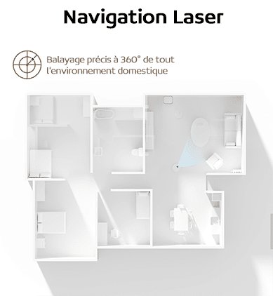 Equipé de la navigation laser de d’une technologie de numérisation de l’environnement à 360°, le robot peut rapidement cartographier l’aménagement de la maison. La carte générée est affichée dans l’application Xiaomi Home.