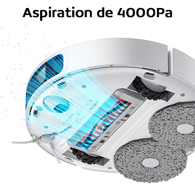 L’aspirateur dispose de 4 modes d’aspiration avec une puissance maximum de 4000Pa. Il aspire donc toutes les saletés même cachées dans les crevasses du sol.