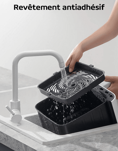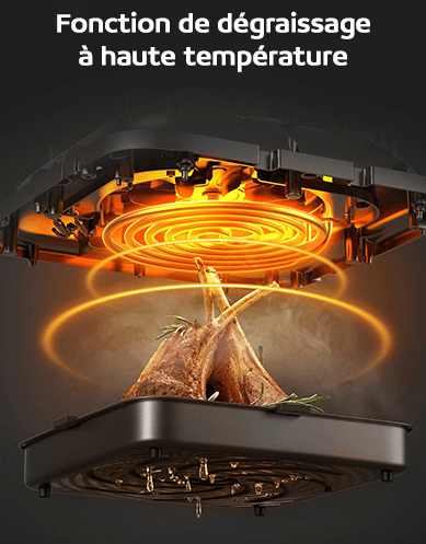La machine intègre une fonction de dégraissage qui permet de filtrer efficacement l’excès de graisse et d’huile. L’efficacité de dégraissage peut aller jusqu’à 196 %. Même en mode grill, la graisse et l’huile peuvent être réduites jusqu’à 88,3 %. Vous pouvez alors profiter des saveurs et manger sainement !