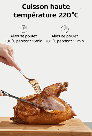 La grande capacité de 6.5L permet de cuisiner pour toute la famille et vos amis. Il est désormais possible de rôtir facilement un poulet entier.