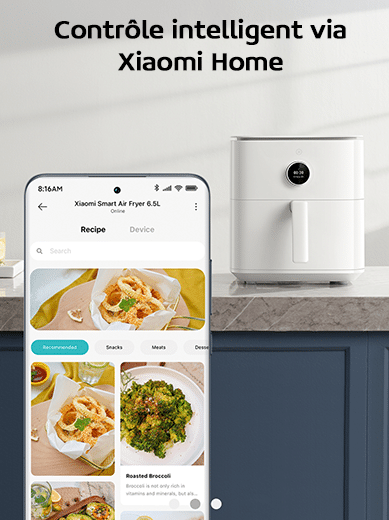 Comme les précédents modèles, la Xiaomi Smart Air Fryer 6.5L est connectée via l’application Xiaomi Home permettant son contrôle depuis le smartphone, une planification intelligente jusqu’à 24h à l’avance ou encore l’accès à plus de 100 recettes cloud !