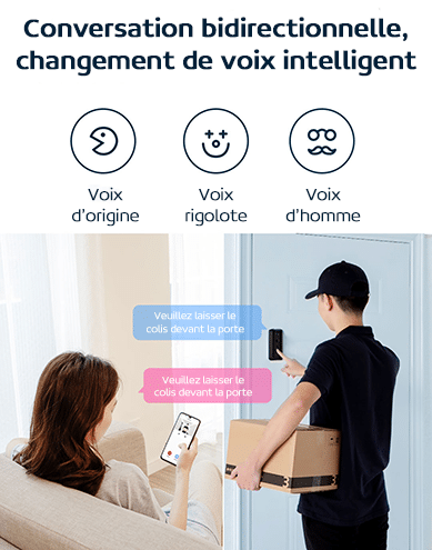 Lorsque quelqu’un sonne à la porte, vous recevez immédiatement une alerte sur votre téléphone, ou écran tactile Xiao AI et il est possible de discuter avec le visiteur. Elle prend également en charge la fonction de changement de voix pour protéger la confidentialité, permettant de ne pas dévoiler votre âge et votre sexe.