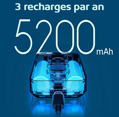 La version 2 fonctionnant à pile, Xiaomi a intégré, dans cette nouvelle version, une grosse batterie au lithium de 5200mAh avec un chargement par USB-C. Il ne sera nécessaire de la recharger seulement 3 fois par an.