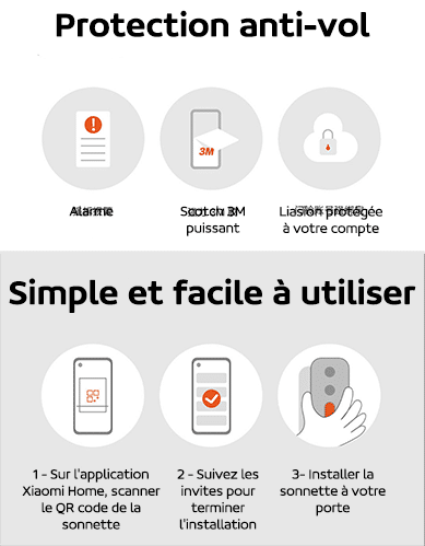 La protection contre le vol est également disponible. Pour l’installation, Xiaomi propose une fixation forte avec un ruban de colle M3 et un système de fixation à vis. Malgré l’association des 2 fixations, si la sonnette venait à être retirée, une alarme se déclenchera et une vidéo de la scène sera enregistrée et envoyée sur votre téléphone.