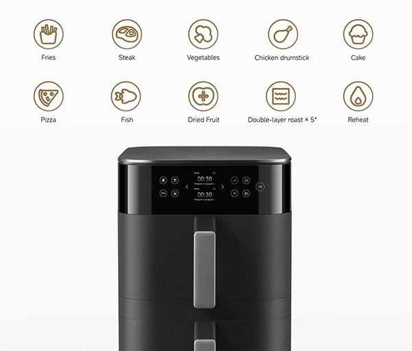 Grâce à sa connectivité, l’air fryer est compatible avec l’application Xiaomi Home, permettant aux utilisateurs d’accéder à plus de 100 recettes guidées, de contrôler la cuisson à distance et de synchroniser les deux paniers afin que tous les plats soient prêts en même temps. L’écran couleur intégré offre une interface claire et interactive, avec des rappels pour retourner ou mélanger les aliments au bon moment.