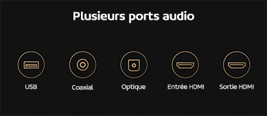 Xiaomi a intégré de nombreux ports audios afin de vous offrir une plus grande variété d’options d’écoute. Elle dispose d’un port USB, d’une prise coaxiale, d’une prise optique, d’une entrée HDMI et d’une sortie HDMI.
