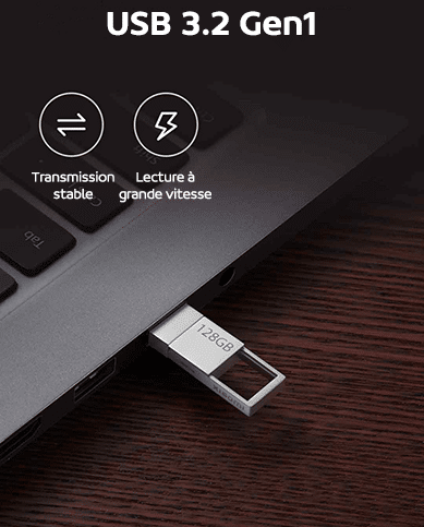 La transmission est stable et très rapide grâce à l’utilisation du protocole USB 3.2 Gen1. La vitesse de lecture atteint les 150Mo/s. Elle existe en 2 versions de stockage, soit 64Gb soit 128Gb.
