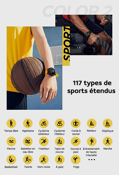 La Xiaomi Watch Color 2 prend en charge 19 modes sportifs professionnels tels que le triathlon, la natation … De plus, elle intègre 117 types de sports étendus. Surveillez et analyser avec précision les données sportives clés telles que la fréquence cardiaque, le rythme cardiaque, les calories consommées… pour vous aider à vous améliorer.