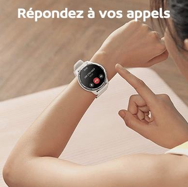 Lorsque votre téléphone sonne, vous pouvez répondre à l’appel sans vous inquiéter de votre téléphone. L’appel sur la montre utilise le Bluetooth, et le téléphone doit être tout de même dans un périmètre proche. Pour passer un appel depuis la montre, il suffit d’appuyer 3 fois de suite sur le bouton en bas à droite et composer le numéro.