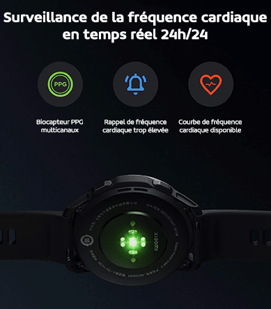 Le biocapteur PPG multicanal peut effectuer la surveillance de la fréquence cardiaque en temps réel 24h/24. Avec la mise à niveau matériel et des algorithmes, il peut surveiller avec précision même pendant des séances de sport à haute intensité et prévenir quand votre cœur a un rythme trop élevé. Avec l’enregistrement automatique, vous avez accès à la courbe de votre fréquence cardiaque des 30 derniers jours.Xiaomi a mis à niveau les analyses d’oxygène dans le sang (SPo2) dans la journée avec la possibilité de choisir l’intervalle de mesure. La surveillance est aussi disponible pendant le sommeil afin de protéger votre santé 24h/24.