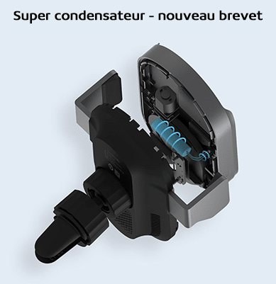 La marque a ajouté un super condensateur permettant d’ouvrir les bras de serrage du chargeur lorsque votre voiture est coupée et donc ne fournit plus d’électricité au chargeur. Appuyez simplement sur le bouton pour retirer votre téléphone après avoir coupé votre moteur.