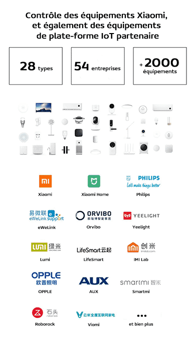 Le contrôle de votre maison n’a pas été oublié et a été mis à jour. Il a été totalement adapté au fonctionnement à la voix et avec l’écran tactile. Ainsi vous pouvez contrôler les équipements Xiaomi, mais également des équipements d’autres plateformes IoT Comme Yeelight, Opple, Philips, Roborock, Smartmi, Viomi, Orvibo, Konke, Lumi, … Une nouvelle fonction qui arrivera le 31 mars 2020 permettant la configuration simplifiée de tous vos appareils connectés.