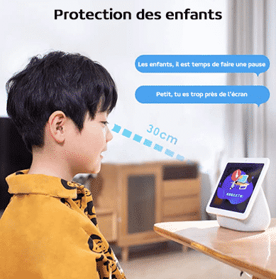 L’enceinte connectée permet, grâce à de multiples protections, de développer de bonnes habitudes face aux écrans pour les plus jeunes. Vous disposez un filtrage du contenu, mais aussi une protection de distance rappelant à votre enfant de rester à plus de 30cm de l’écran. De plus, elle intègre un contenu éducatif personnalisé complètement adapté aux enfants.